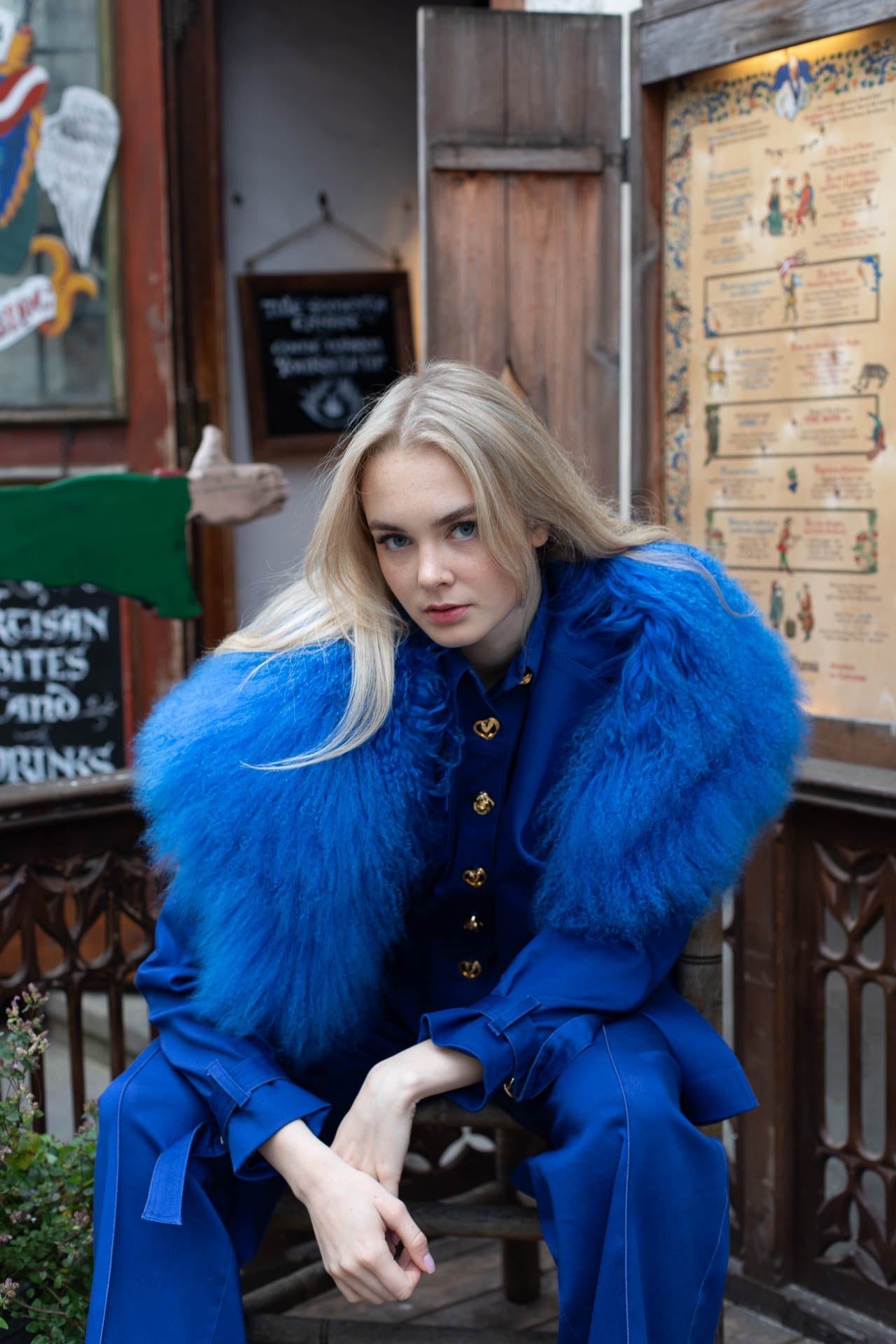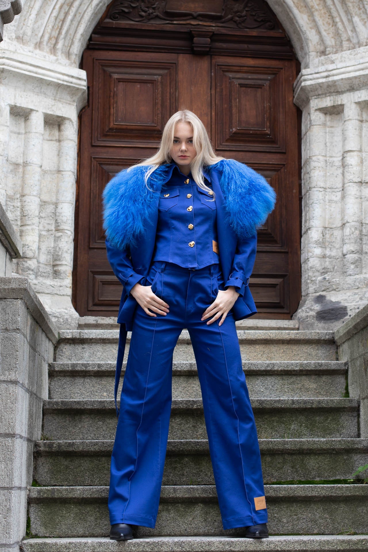 Stylish blue denim trench jacket from the "I Love Your Coat" collection. The jacket has a viscose lining and a removable collar decoration. It is suitable for pairing with various everyday clothes as well as blue blouses and pants from our denim collection.