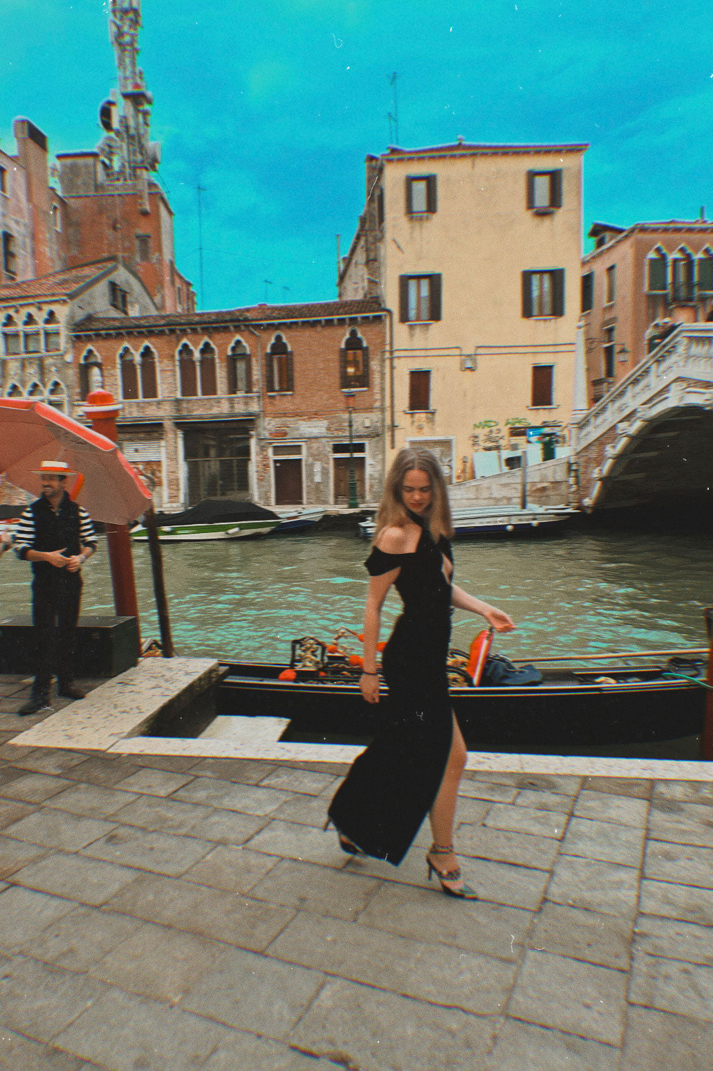 Elegant dress with a refined silhouette and golden buttons, radiating James Bond–like allure, adventure, and mystery.