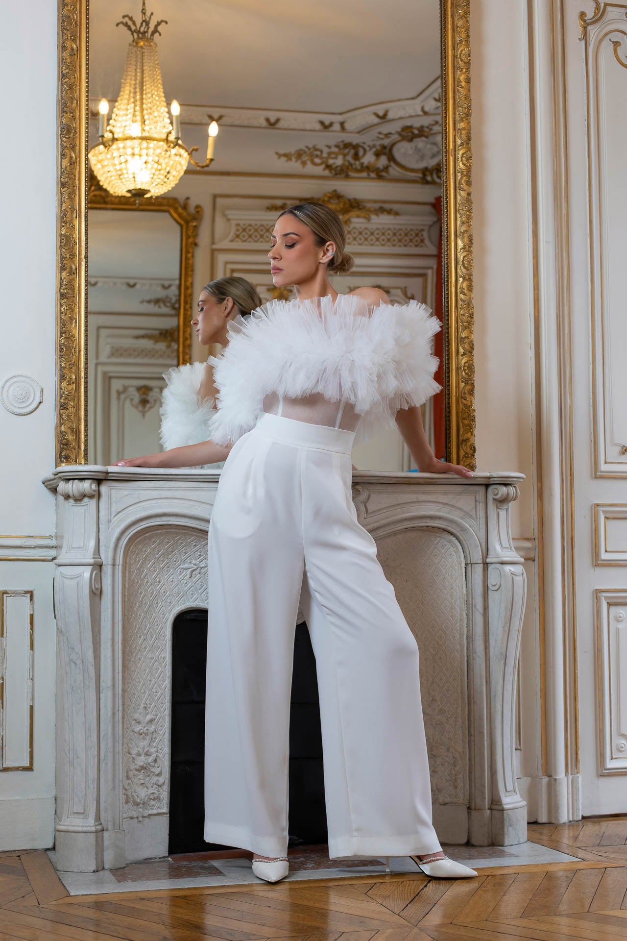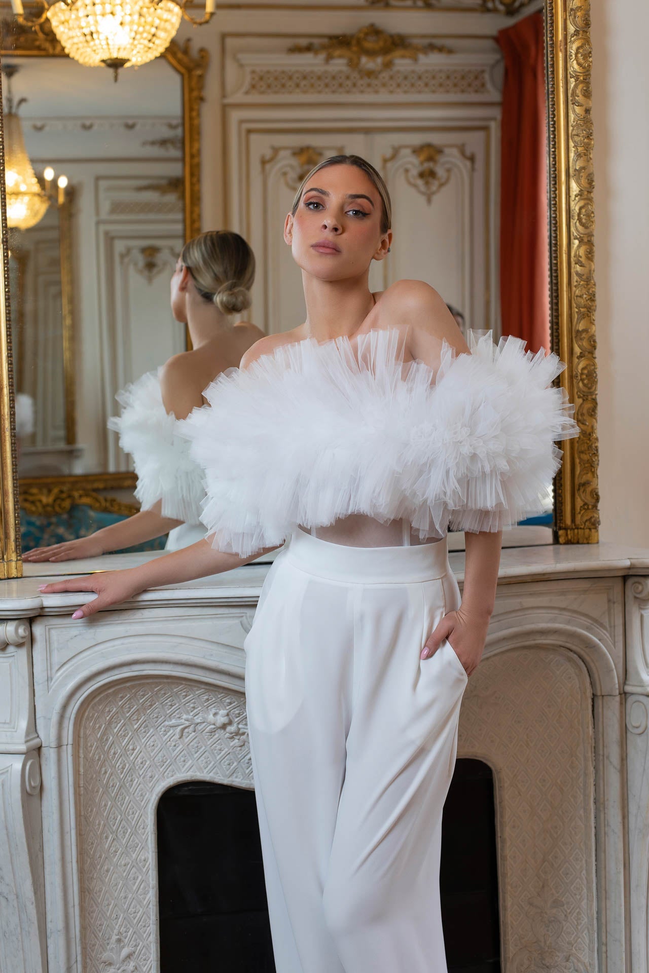 White Haystack Bodysuit: Fluffy Tulle Bodice